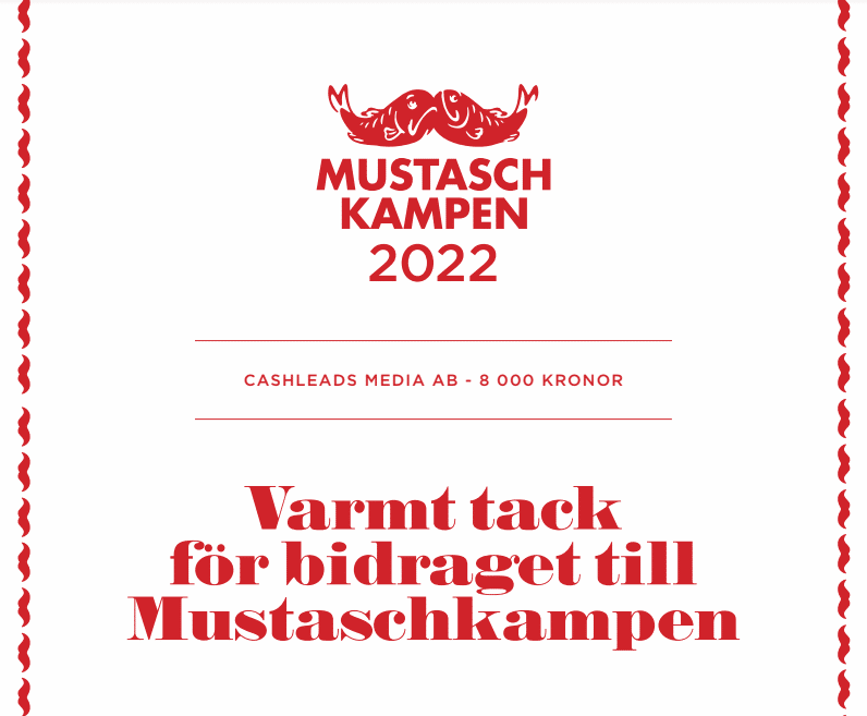 Under november månad gjordes flera initiativ från Travcash och våra vänner på Spelcash och Pokercoach till förmån för vår insamling till Mustaschkampen. Dels gjorde vi andelsspel tillsammans med populära travprolfiler som Ola Samuelsson, dels gjorde vi en välgörenhetsturnering med Fantasyspelbolaget Fsport, och sist men inte minst gjorde vi en pokerturnering tillsammans med Coolbet.